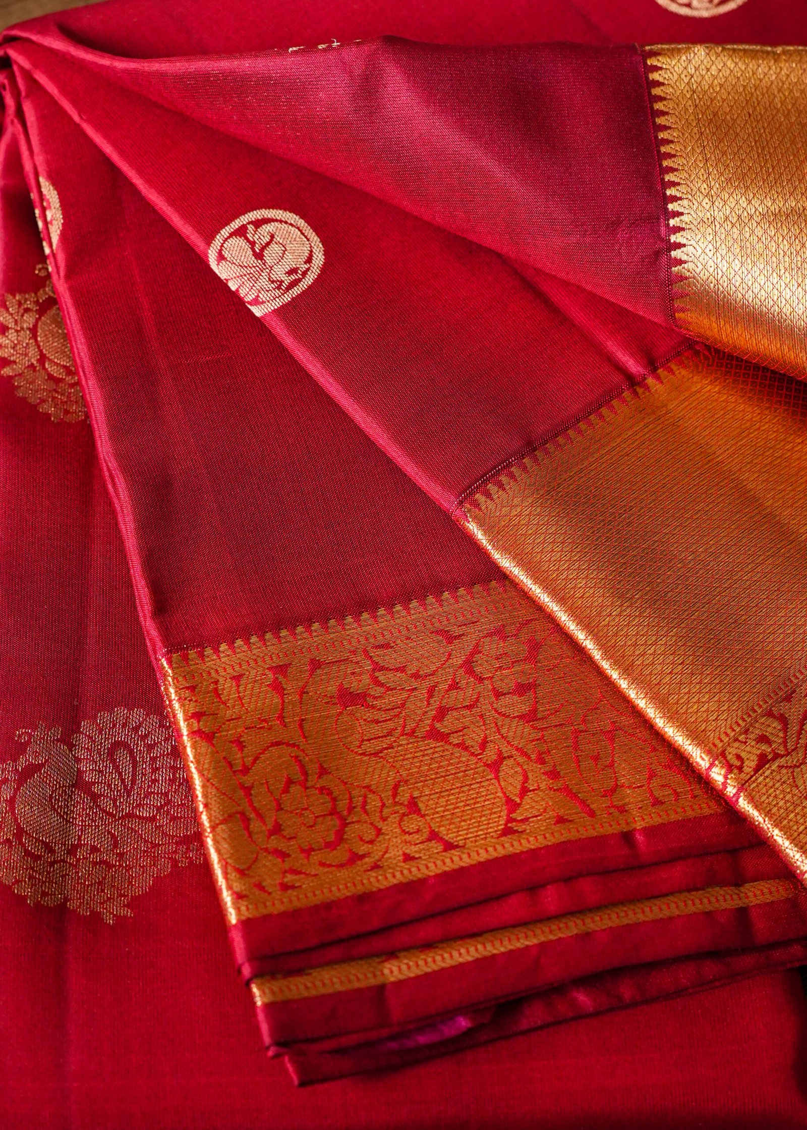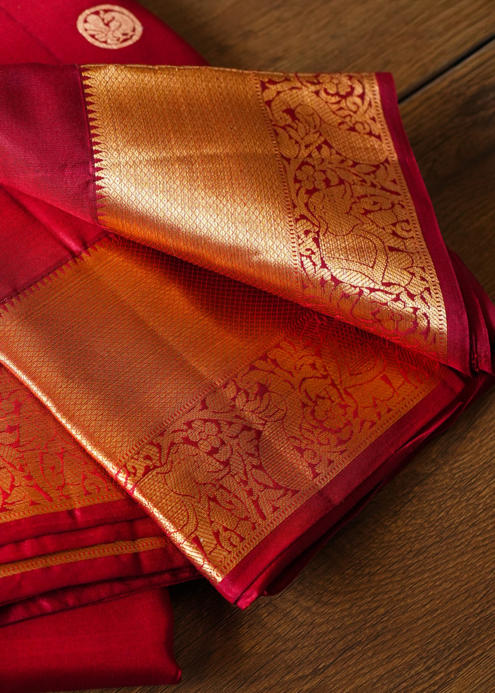 A perfect shade with perfect quality. Pure Kanchipuram handloom saree crafted with fine silk and elegant 2-gram zari work. A perfect blend of tradition, durability, and graceful shine.