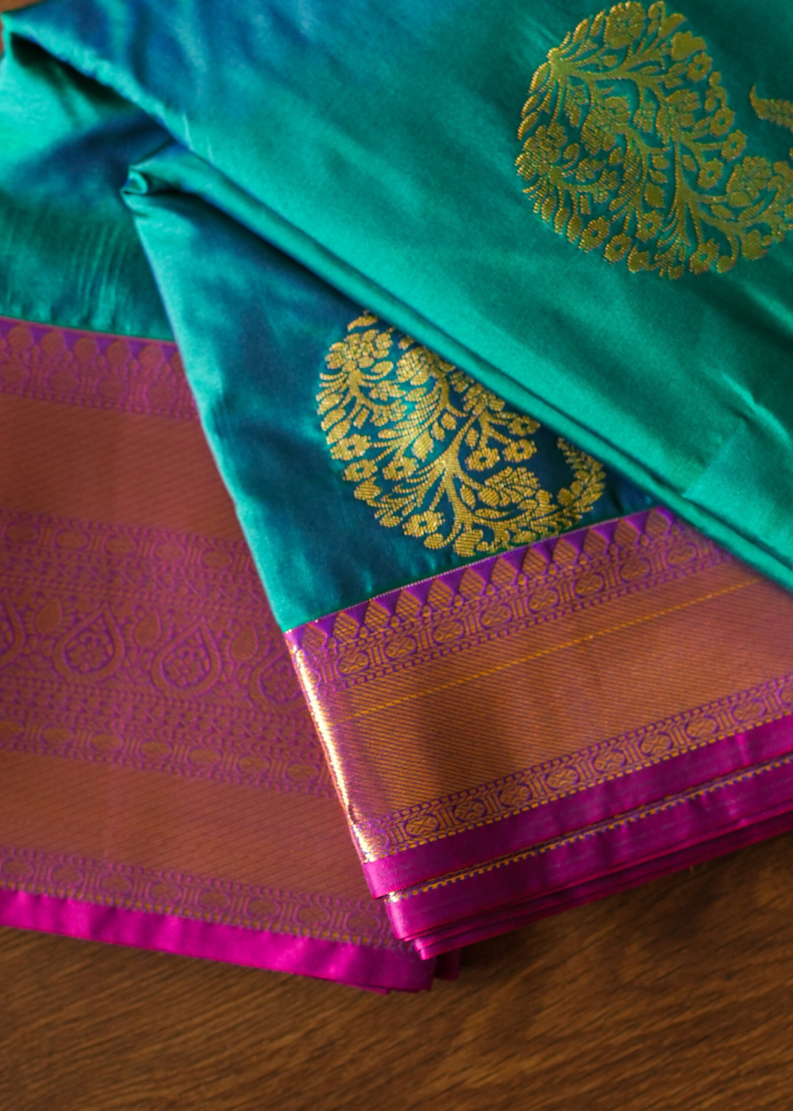 Color Disclaimer: The actual color of the saree may differ slightly due to photographic lighting and monitor settings.